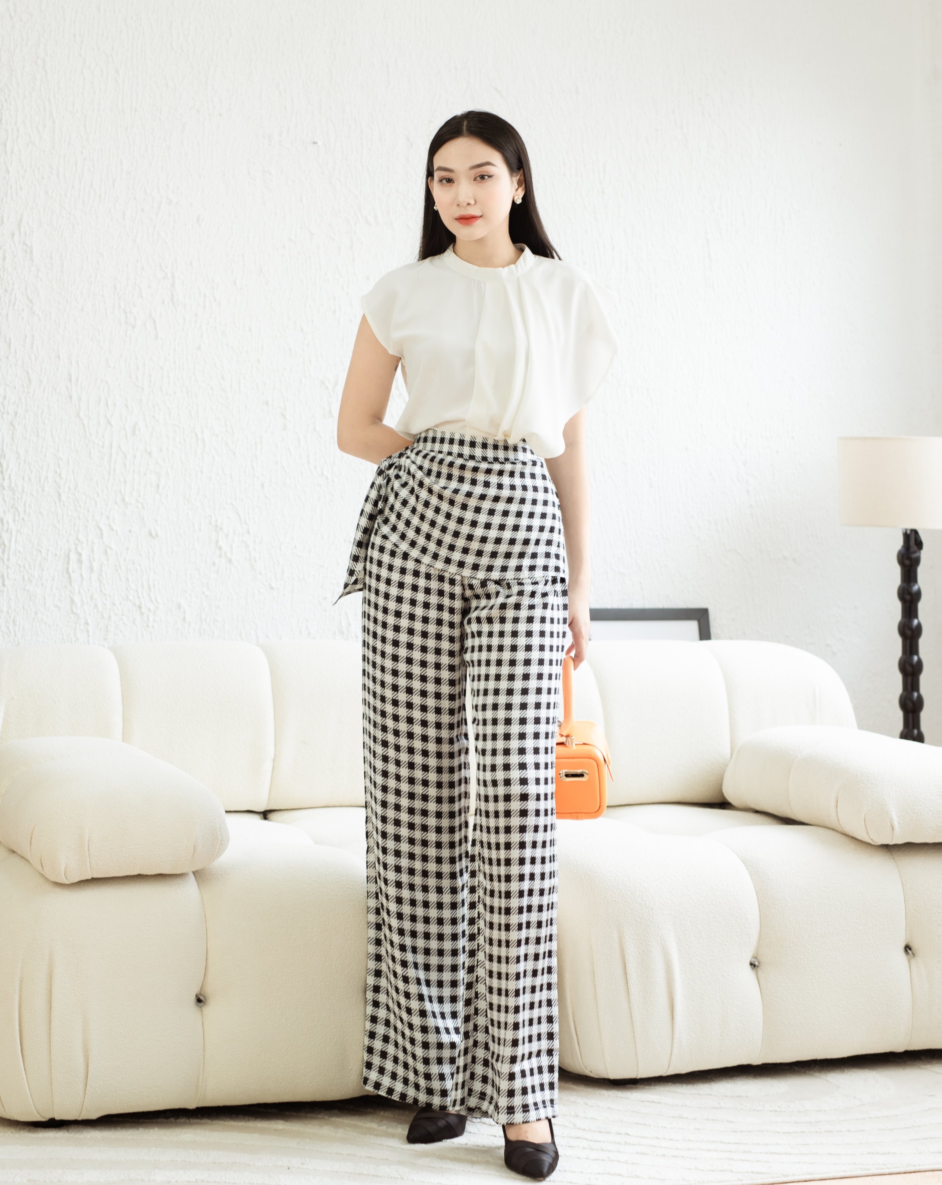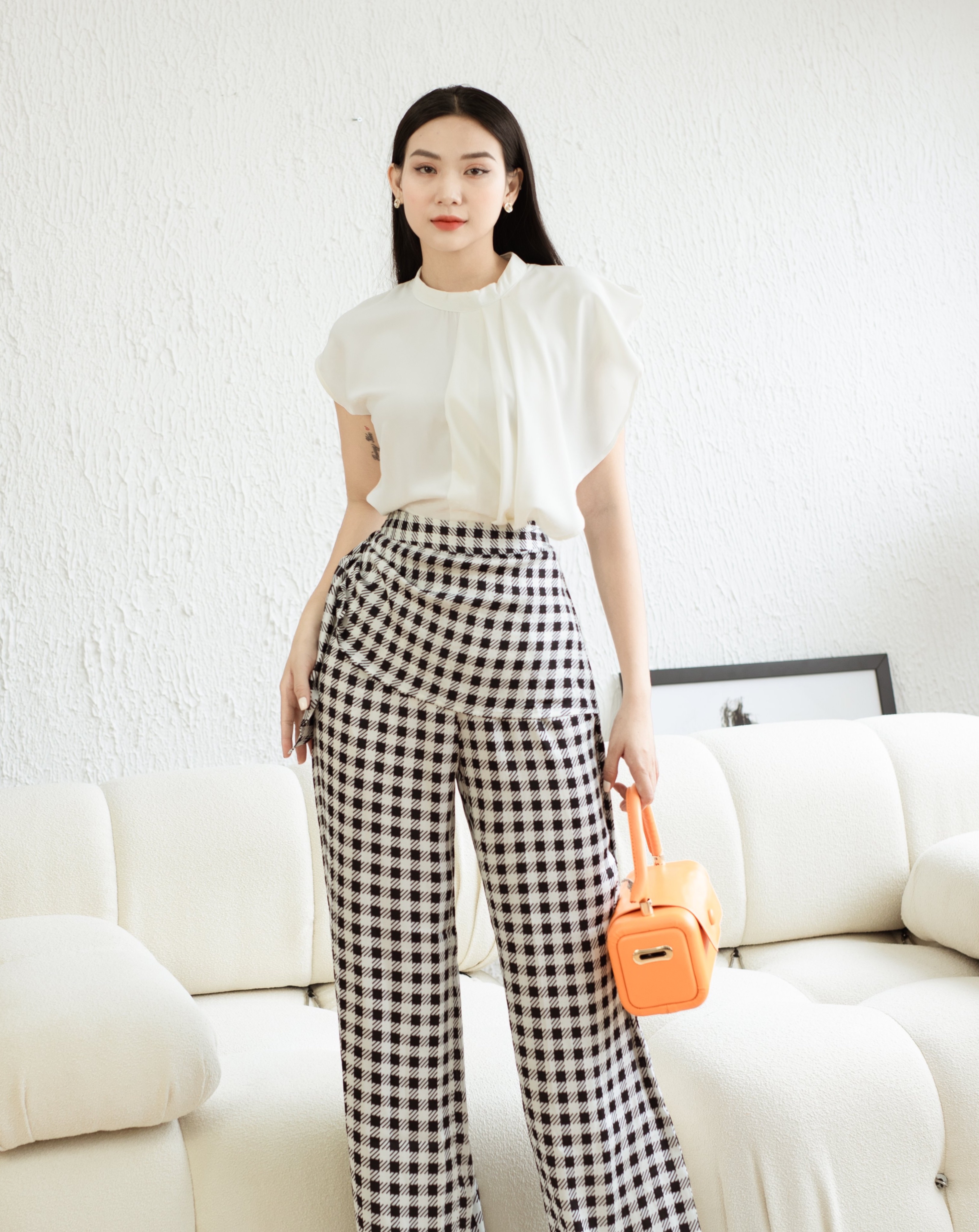 Áo có màu sắc trắng tinh khôi, tạo nên vẻ ngoài tươi mới và sáng sủa. Màu trắng cũng tạo điểm nhấn cho viền bèo ngực, tôn lên phần trên của cơ thể và tạo nên vẻ đẹp tinh tế. Kiểu dáng áo là áo kiểu, với cổ lọ và viền bèo ngực, tạo nên điểm nhấn nữ tính và quyến rũ. Cổ lọ mang đến vẻ thanh lịch và sang trọng, trong khi viền bèo ngực thêm phần điệu đà và cuốn hút. Thiết kế này phù hợp với nhiều dịp và sự kiện, từ công sở, du lịch, event, đi tiệc cho đến dạo phố.