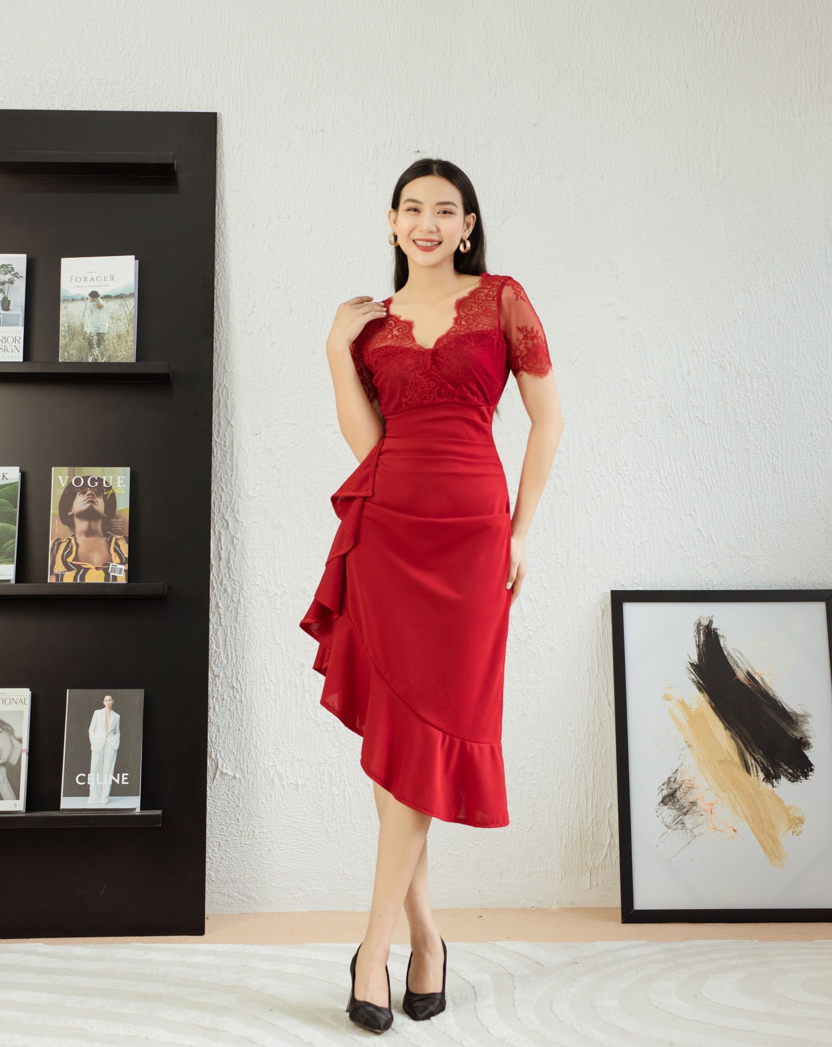 Đầm có hai màu sắc chủ đạo là đen và đỏ, mang đến sự lựa chọn phong cách cho nàng. Kiểu dáng Đầm body thiết kế với đường cắt phối ren độc đáo và phá cách, tạo nên điểm nhấn quyến rũ.