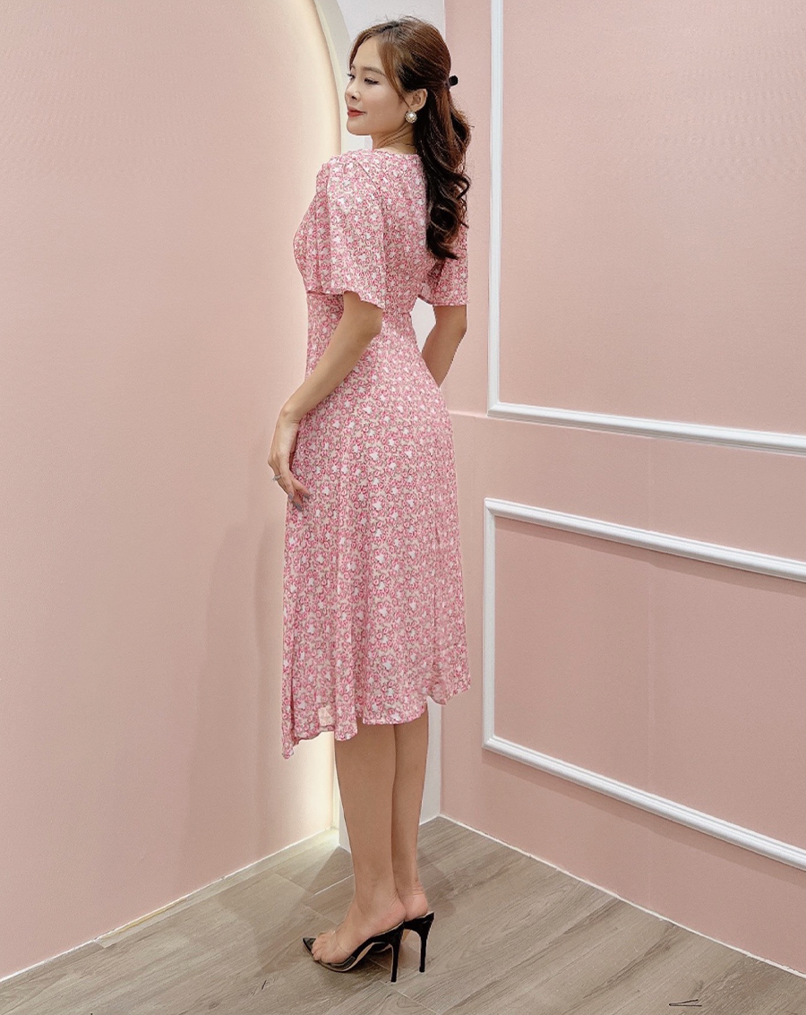Chất liệu voan Hàn Quốc cao cấp, cùng với lớp lót bên trong, mang lại cảm giác mềm mịn và thoải mái khi mặc. Màu sắc chủ đạo của đầm là hồng, tạo nên sự tươi trẻ và nữ tính cho người mặc. Đầm xinh xắn này có kiểu dáng cổ V tinh tế, giúp khéo léo khoe dáng và tôn lên vẻ đẹp của ngực và cổ. Đầm cũng có tay và là đầm xoè, tạo nên sự nhẹ nhàng và duyên dáng.