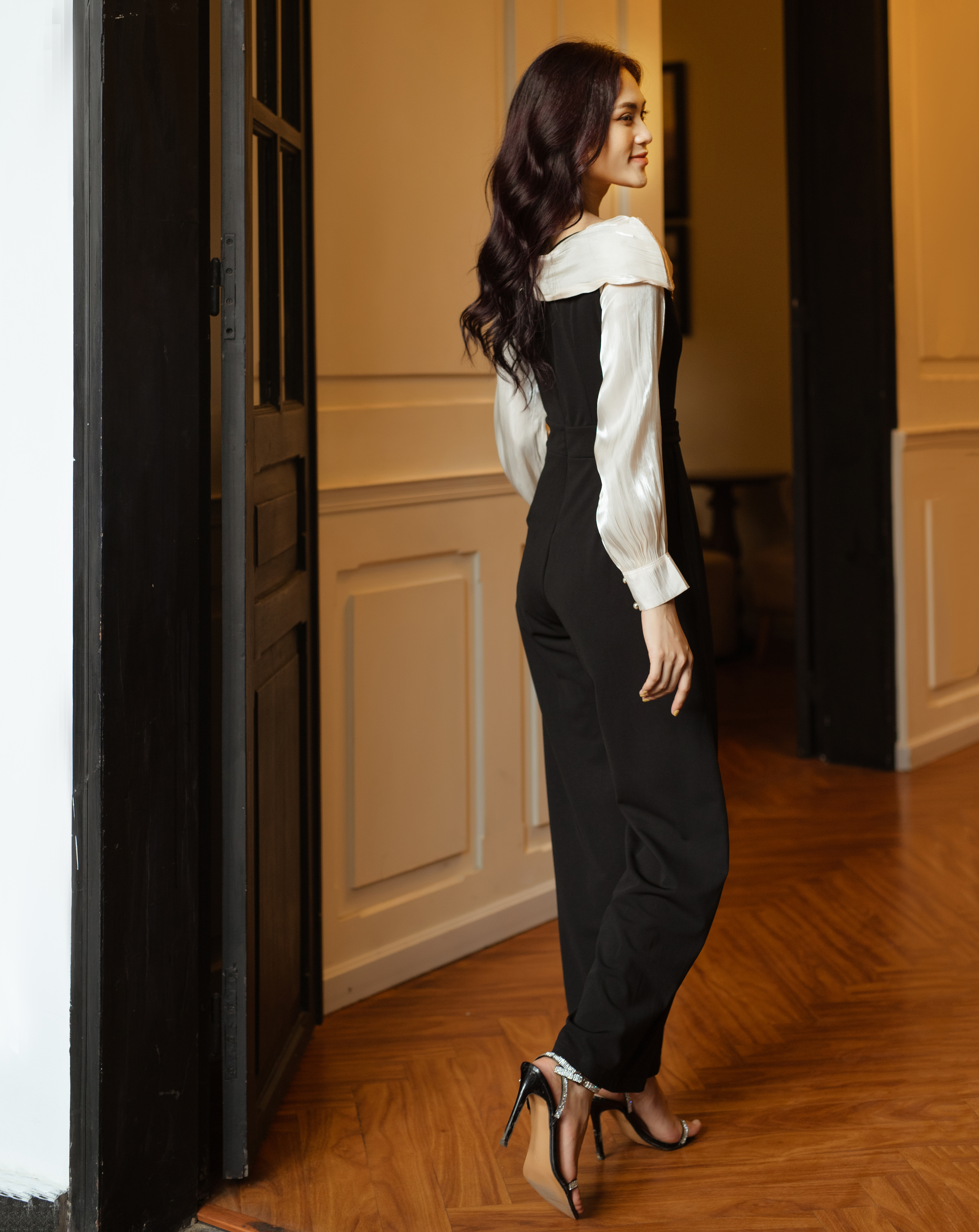 Với phần áo lệch vai, Được làm từ chất liệu Lụa Hà Lan & Oranza hàn mang lại sự thoải mái và dễ dàng di chuyển. Jumpsuit dài phù hợp cho nhiều dịp từ những buổi dạo phố thường ngày đến các sự kiện.