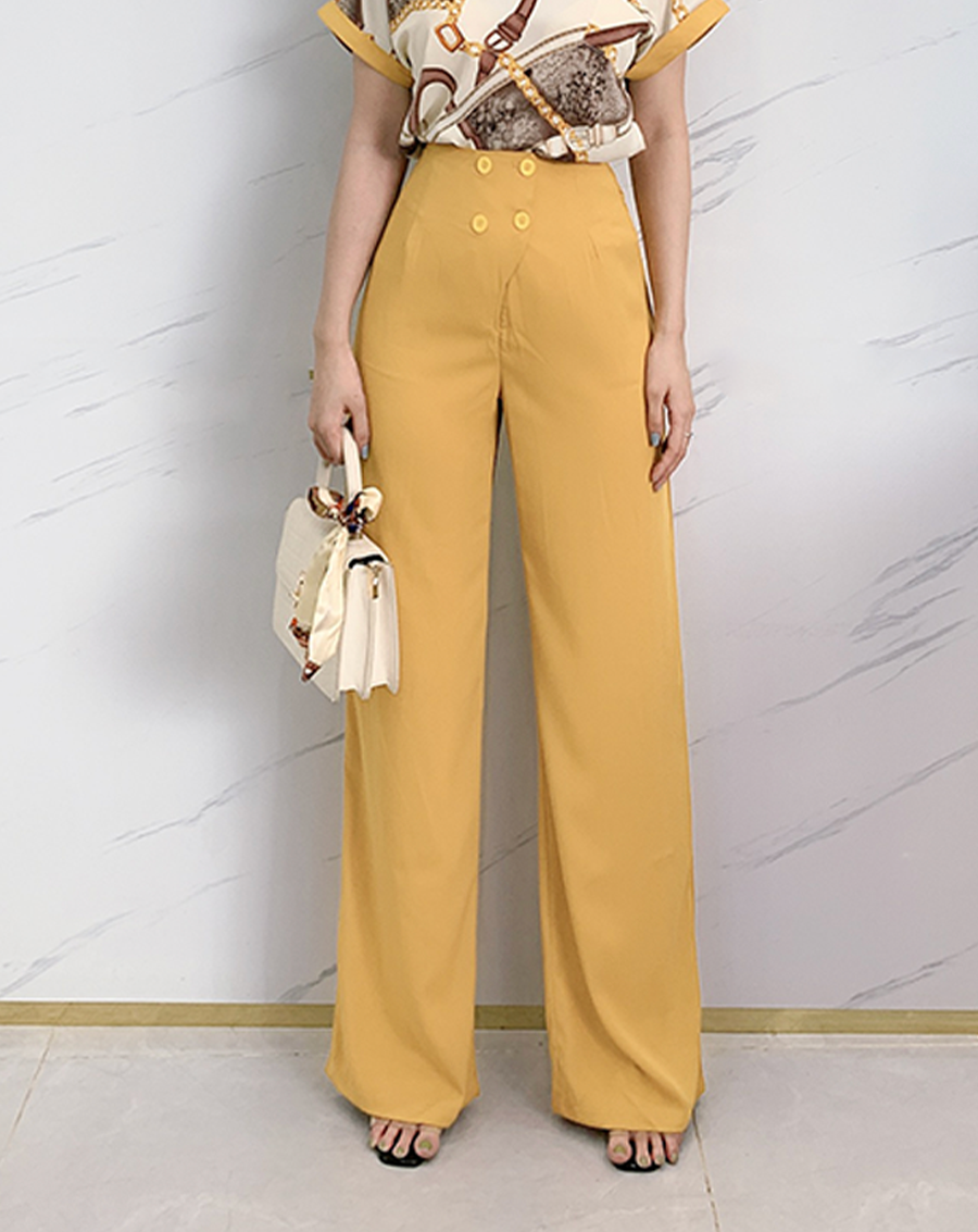 Chất liệu chính của quần là cotton lạnh, mang lại cảm giác mát mẻ và thoải mái khi mặc. Quần dài ống rộng eo cao 4 nút với hai màu sắc bao gồm đen và vàng, cho phép bạn lựa chọn theo sở thích cá nhân và phong cách của mình. Kiểu dáng ống rộng và eo cao giúp tôn lên vẻ thanh lịch và phong cách hiện đại.