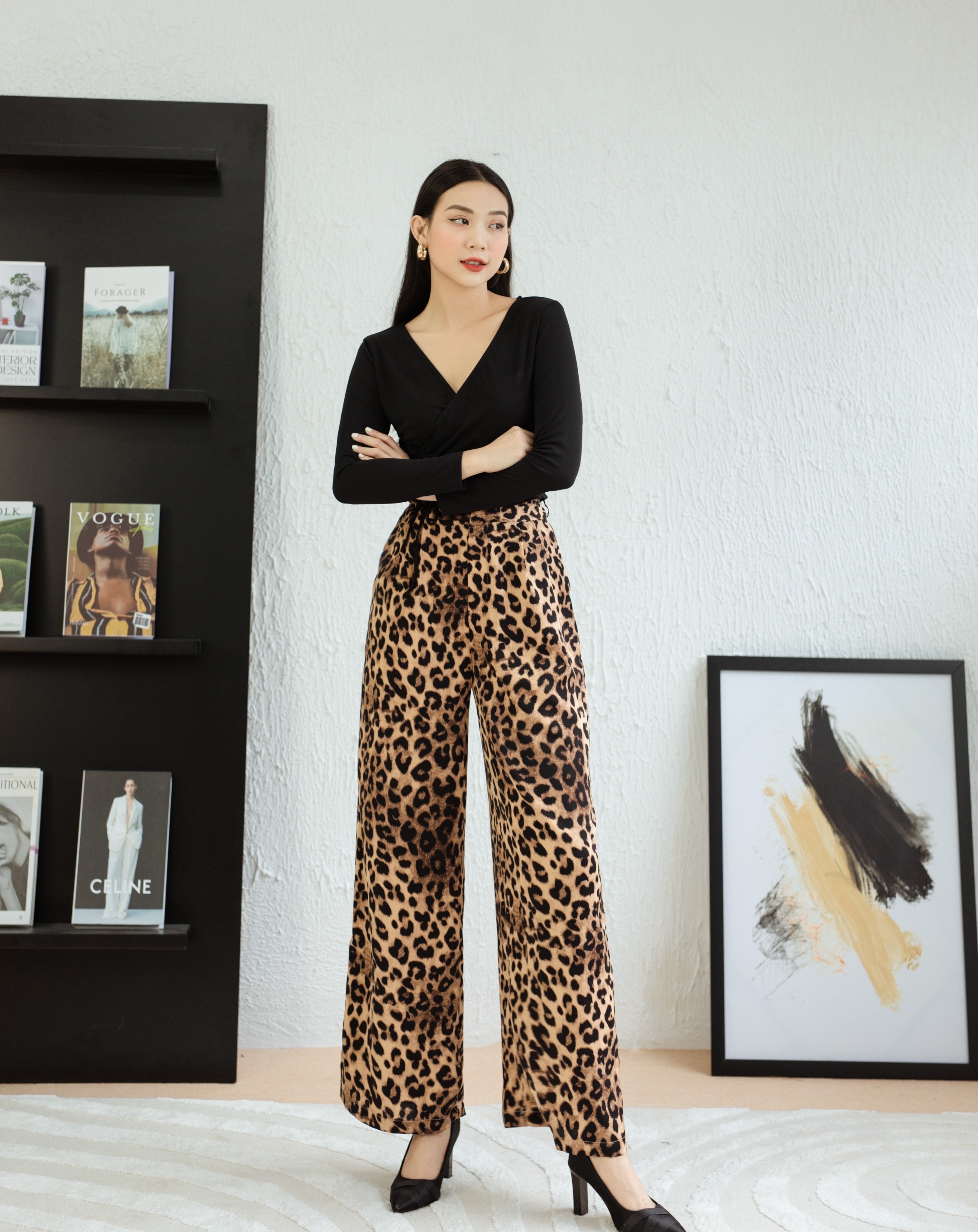 Kiểu dáng của quần được thiết kế với kiểu quần dài ống rộng, tạo cảm giác thoải mái và phong cách. Lưng cao giúp che khuyết điểm và tôn lên vòng eo, tạo vẻ thon gọn cho người mặc. Quần cũng có túi hông, mang tính thực tiễn và tiện dụng.