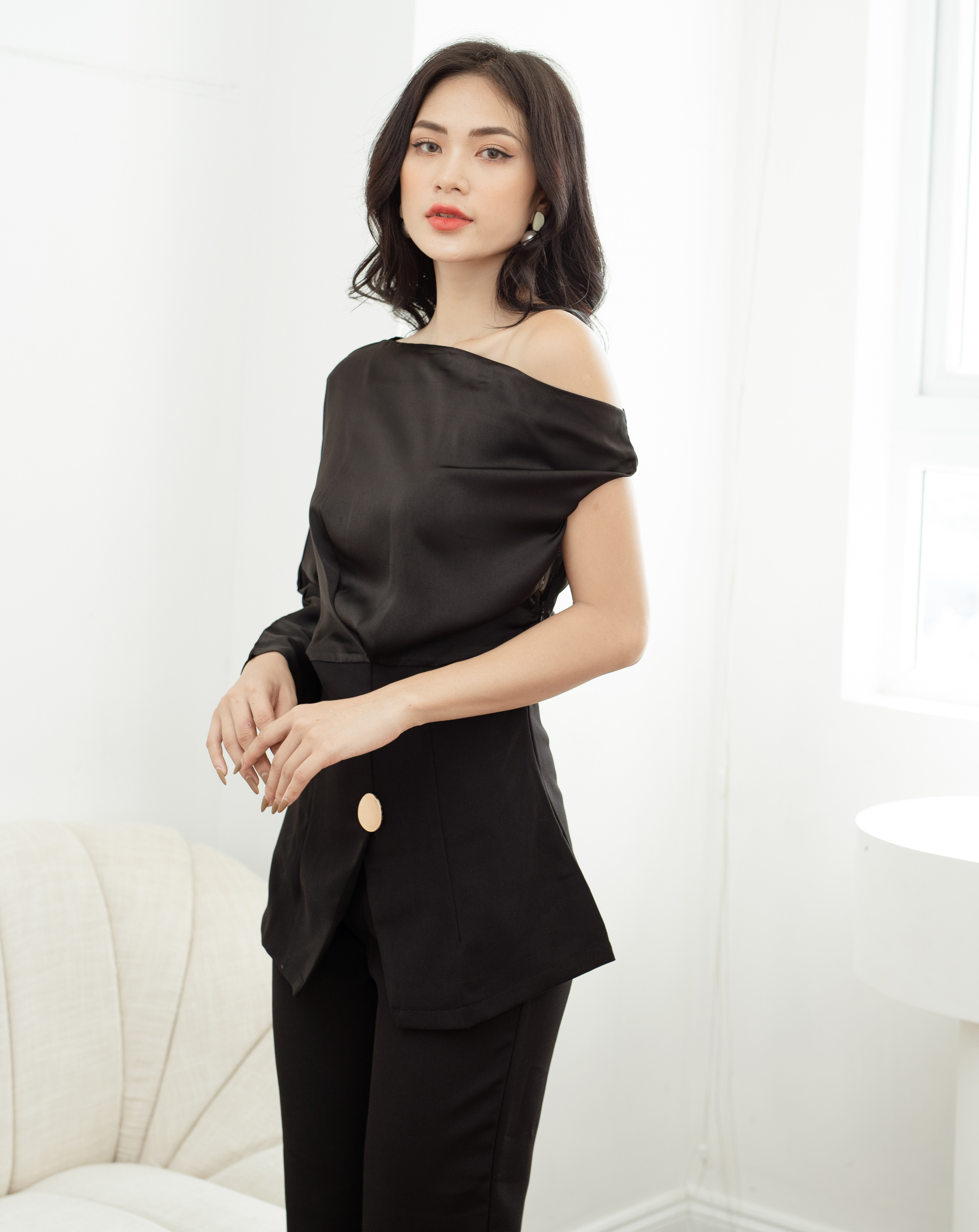 ● Kiểu dáng : Set bộ rời, Áo kiểu lệch vai, quần ống loe
