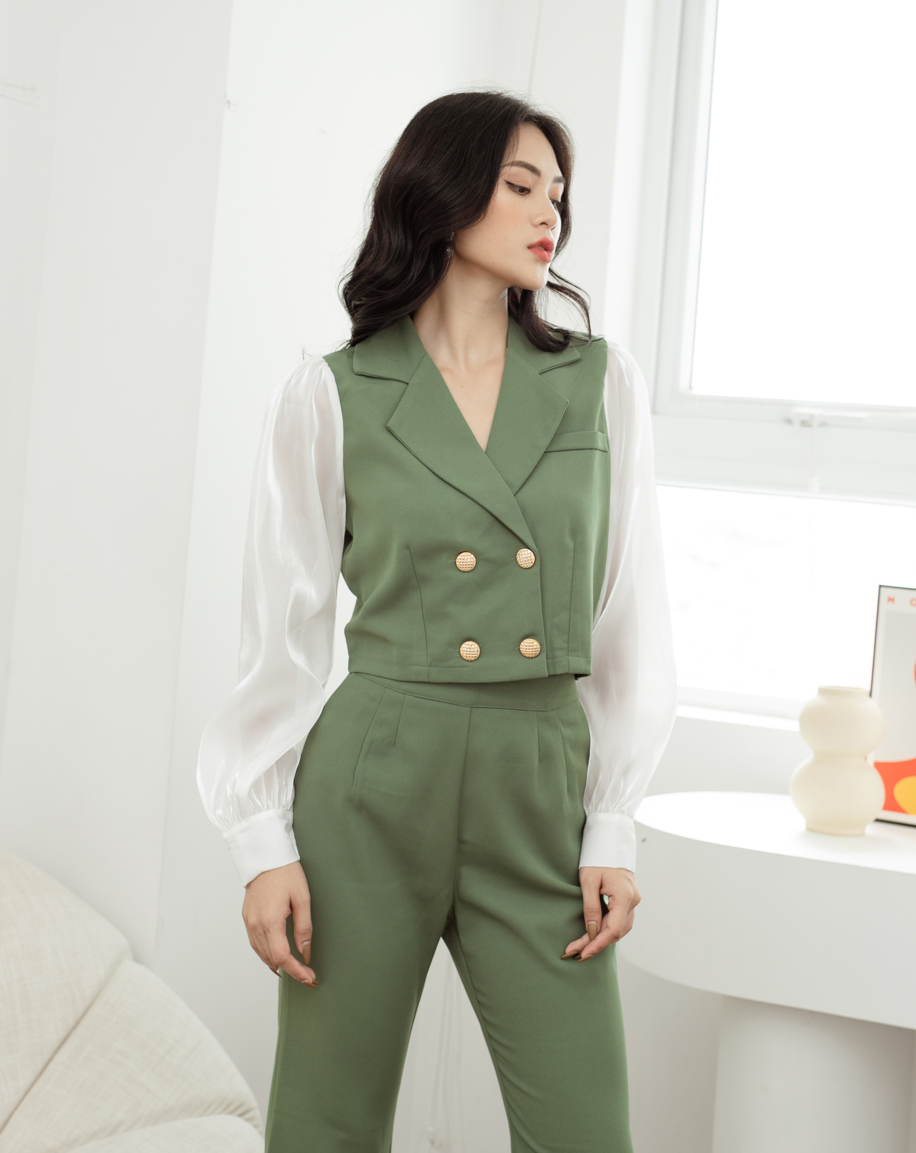 Set bộ Vest lửng phối màu Stye HQ